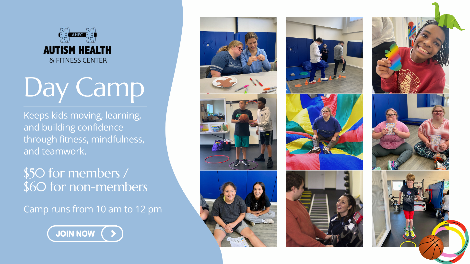 Our camp is a group experiences. In some cases we can provide a 1:1 experience for an additional fee. Camp is well supported with volunteers and staff, though it may be necessary for some participants to attend camp with additional support who can best manage the safety of the individual. Examples of someone that may need additional support include running away from the group, self harm, or harming others, needs assistance with toileting, or not being able to follow any instruction in a group setting. It is up to the discretion of Autism Health & Fitness Center to determine if the member would be required to have a 1:1 support in order to participate. This is to keep the member, their teammates, and staff safe and having fun.